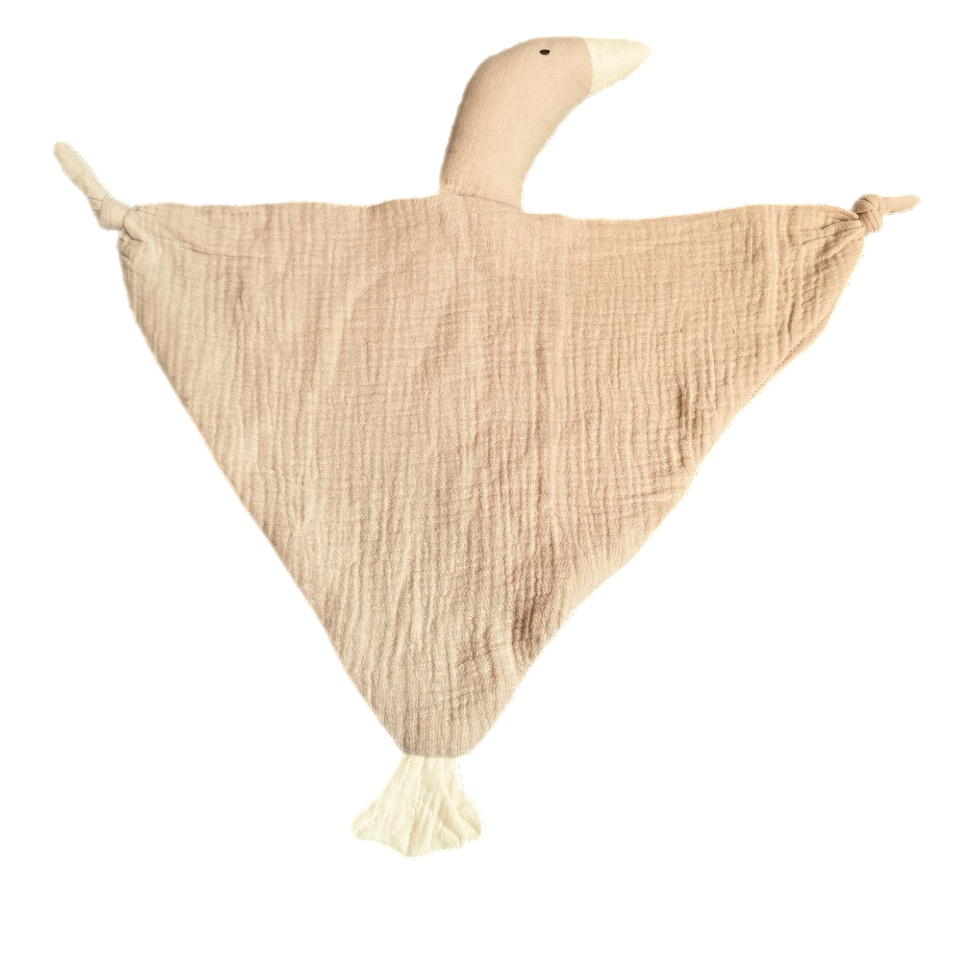 The interior is filled with 100% GOTS certified raw organic cotton, an all-natural alternative to synthetic fibers that won’t release microplastics into the environment. With knotted corners for tiny hands to grip and a sweet goose head for extra charm, it’s designed to be loved from the nursery to naptime and beyond.