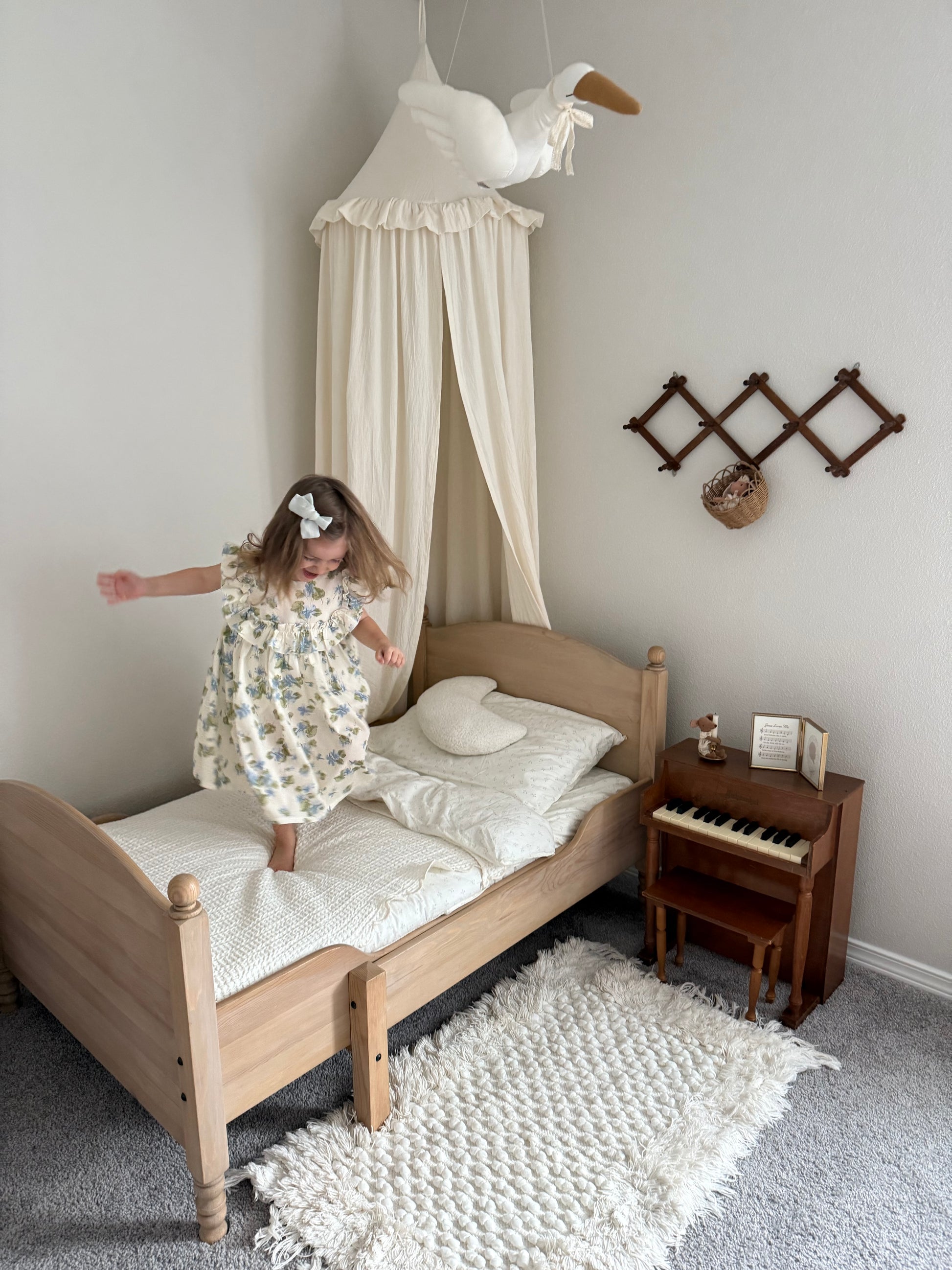 Thoughtfully lightweight and easy to hang, this sweet stork adds warmth and whimsy without overwhelming your space. It’s the kind of timeless décor piece that grows with your child, becoming part of the simple, meaningful moments, they’ll remember.