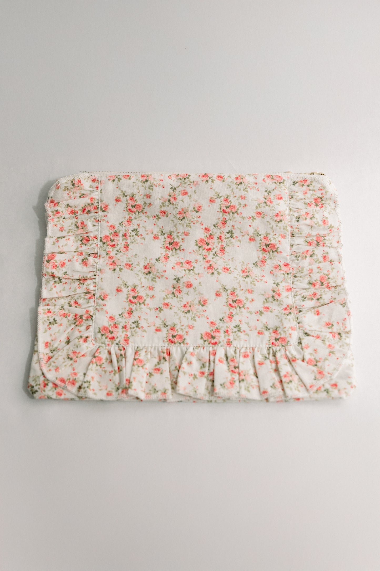 Wisteria Lane |Timeless Floral Ruffle Zipper Pouch