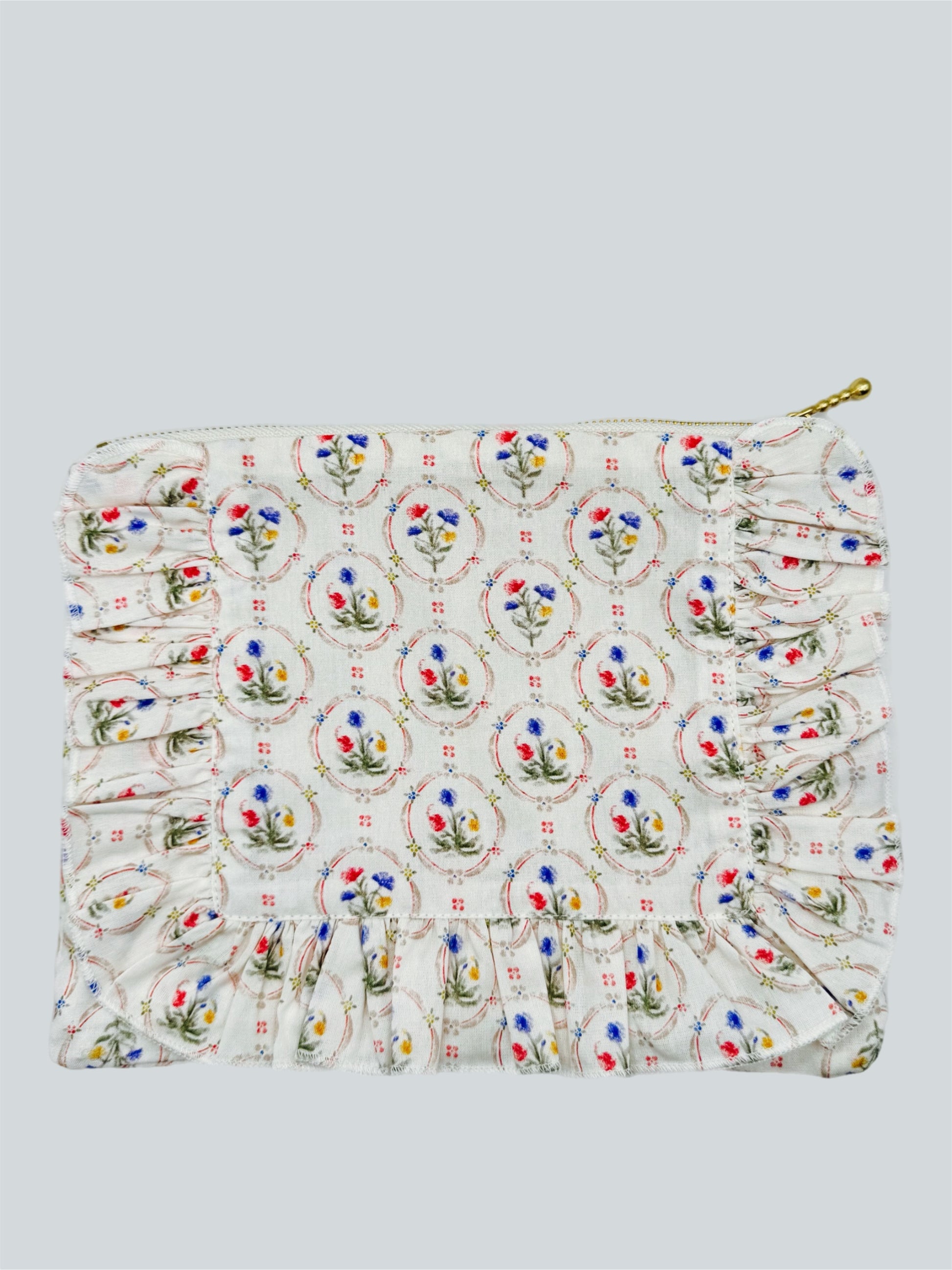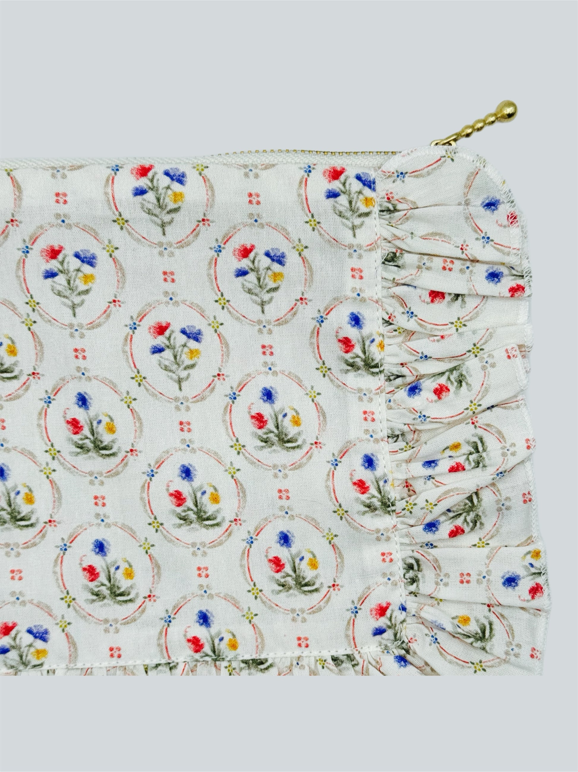 Victorian Garden |Timeless Floral Ruffle Zipper Pouch